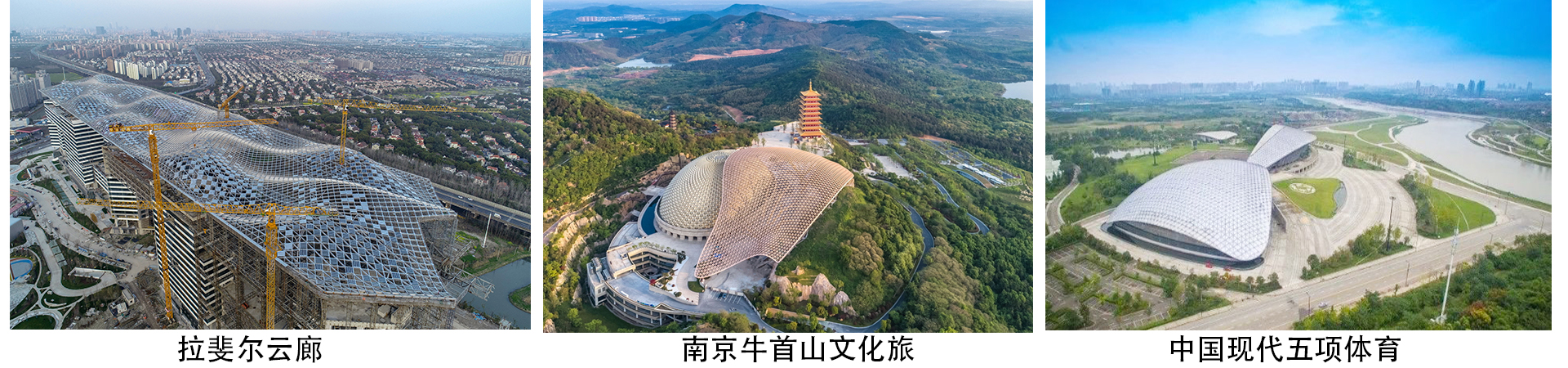 上海通用建筑工程有限公司拥有卓越的设计团队,从功能、造型到绿色、节能,块面、曲线、色彩每一个元素都给用户带来舒适的协调感。环境、空间、功能的精妙组合让建筑流光溢彩,生意盎然。中国现代五项体育赛事中心——游泳击剑馆工程,屋面采用单层铝合金网壳结构,最大边距126米,属当时同类屋面结构跨度之最;南京牛首山文化旅游区佛顶工程,曲线复杂,跨度极大,首创“大跨度多曲率异形曲面铝合金屋盖分块滑移技术”,荣获科技创新成果称号;